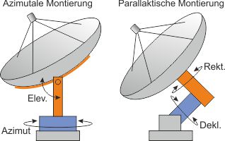 Rektaszensionsachse. Die zweite Achse bestimmt die Ausrichtung in Bezug