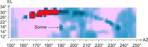 Höhe und Position stimmen mit dem Stand der Sonne zu dieser Tages- und